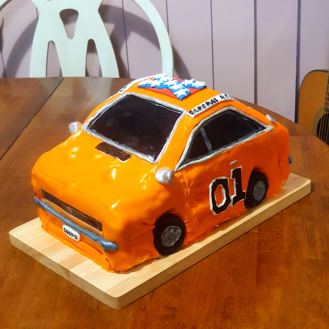 Apologies to anyone who was hanging out to see my General Lee cake last week. (It possibly wasn't worth the wait - it looks like a taxi, but Cody loved it.) I clearly remembered telling myself that large sheets if fondant was a very bad idea when I made the Ninjago cake, but unfortunately, I didn't remember that until I was attempting to cover the Dodge (taxi) with a large sheet of fondant that continually tore. I'm writing it here for future reference...