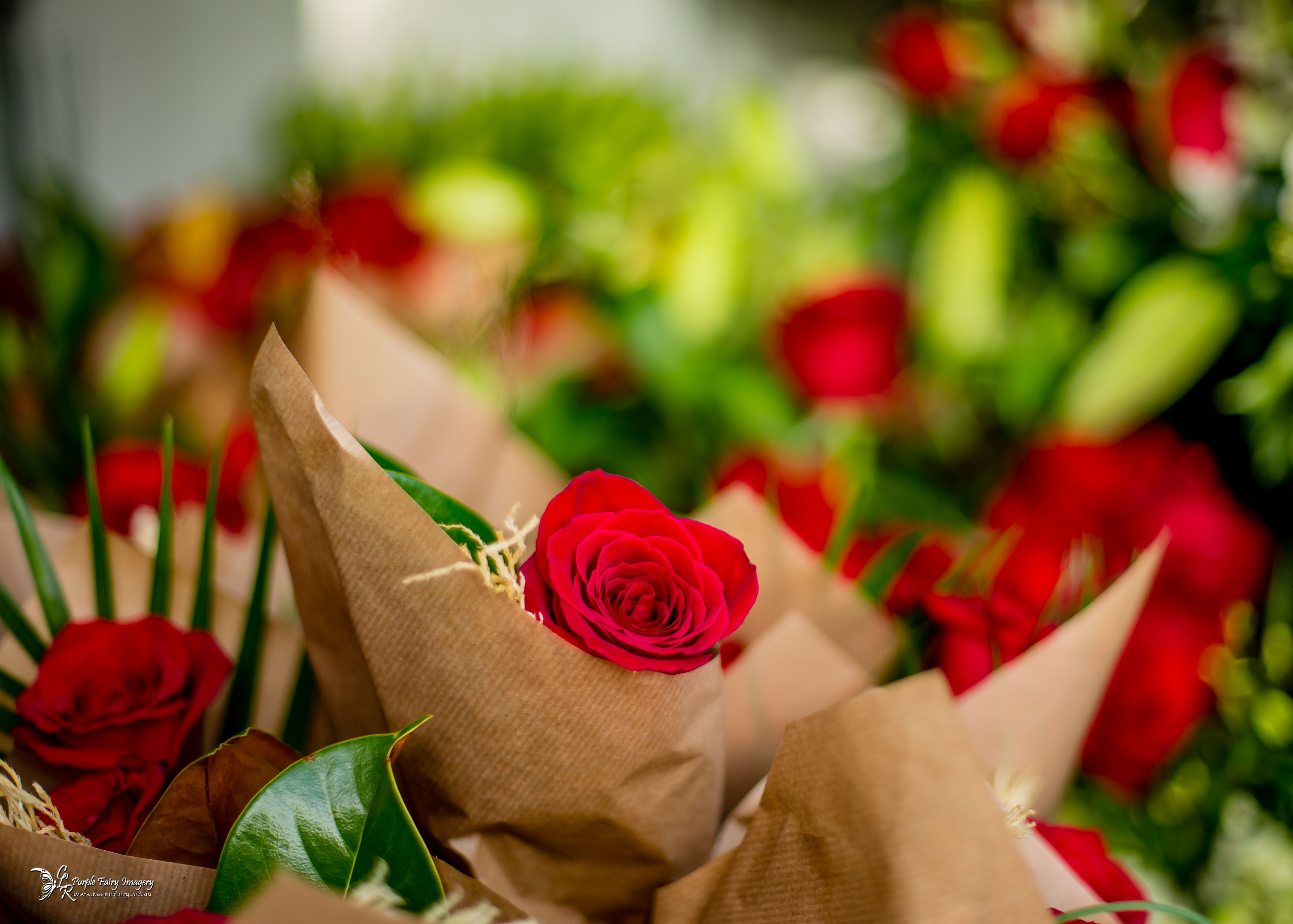 Week 6 was Depth of Field, with the Extra Challenge being f1.4. I pulled out the trusty 50mm f1.4 (his name is Leroy) and snapped (yes, I snapped, no elaborate set up) a shot of the inside of the cool room filled with Valentine's Day flowers. I don't often work with a low f number anywhere except low light, so this was a nice reminder of the lovely effect a blurred background can create.